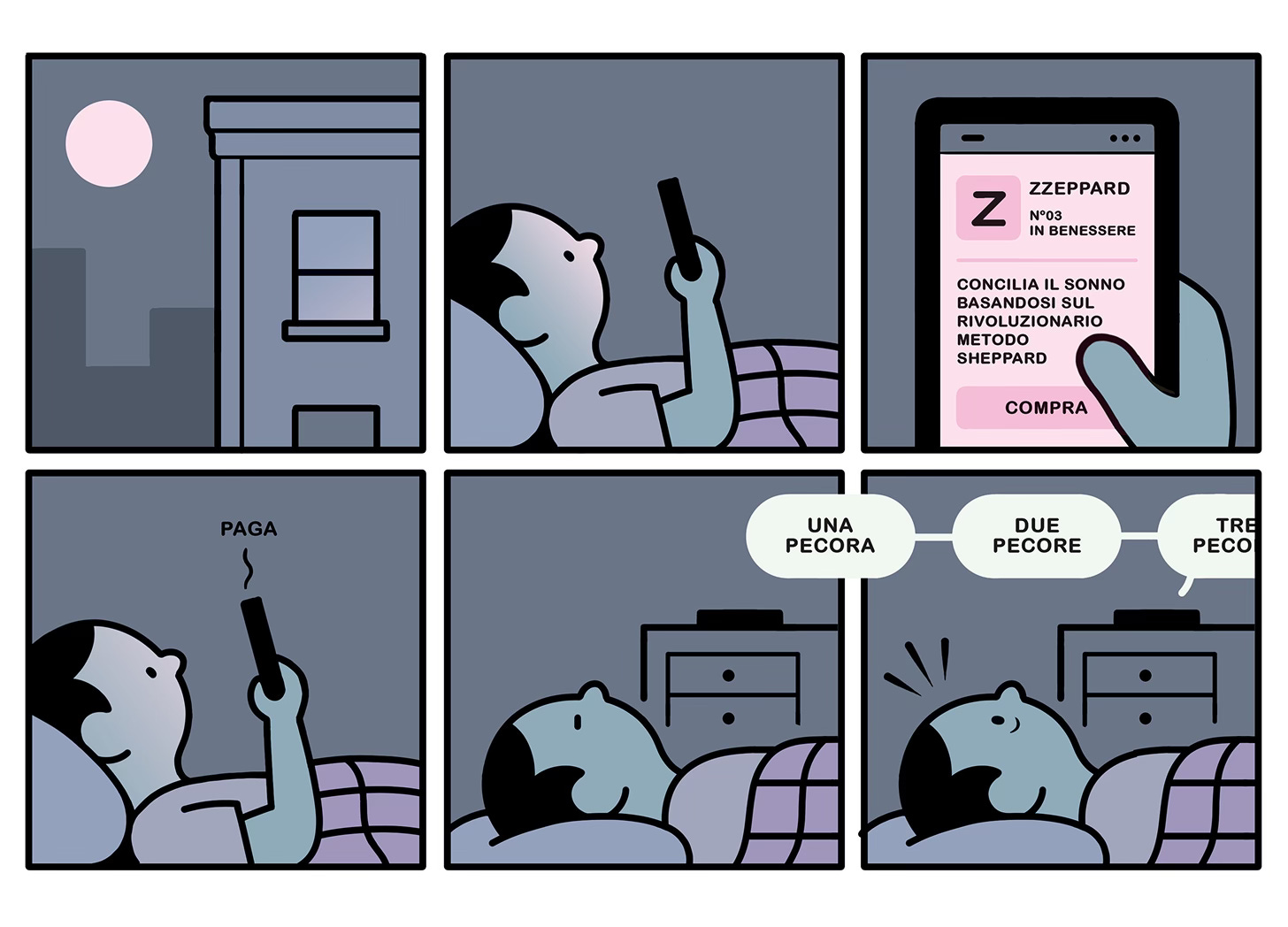 La routine quotidiana nell'era delle app. Tra efficienza, algoritmi e il desiderio di una vita sempre più misurabile. Appuntamento ogni venerdì con "Una giornata ipermoderna. Ritratti di un’esistenza ottimizzata", la nostra nuova serie.L’app va attivata al momento in cui ti sdrai. Il telefono va posto preferibilmente a faccia in su sul comodino – lo dice il popup che inevitabilmente compare tutte le sere, e non lo levi perché non riesci mai a ricordare questo particolare, perché c’è invece un’altra app in cui devi mettere il telefono sotto al cuscino. Il rumore bianco – fondamentale per addormentarsi rapidamente – è solo nella versione premium, attivata al Black Friday con un sostanzioso sconto del 40% su di un ipotetico prezzo pieno di nove euro al mese. Il piano full comprende anche le favole della buonanotte per adulti, peccato che siano solo in inglese. Monitori il tempo tra il momento in cui ti sei sdraiato e il momento in cui l’app decreta che stai dormendo. Si chiama tempo di latenza, e la sua durata ottimale è stimata in dieci minuti.